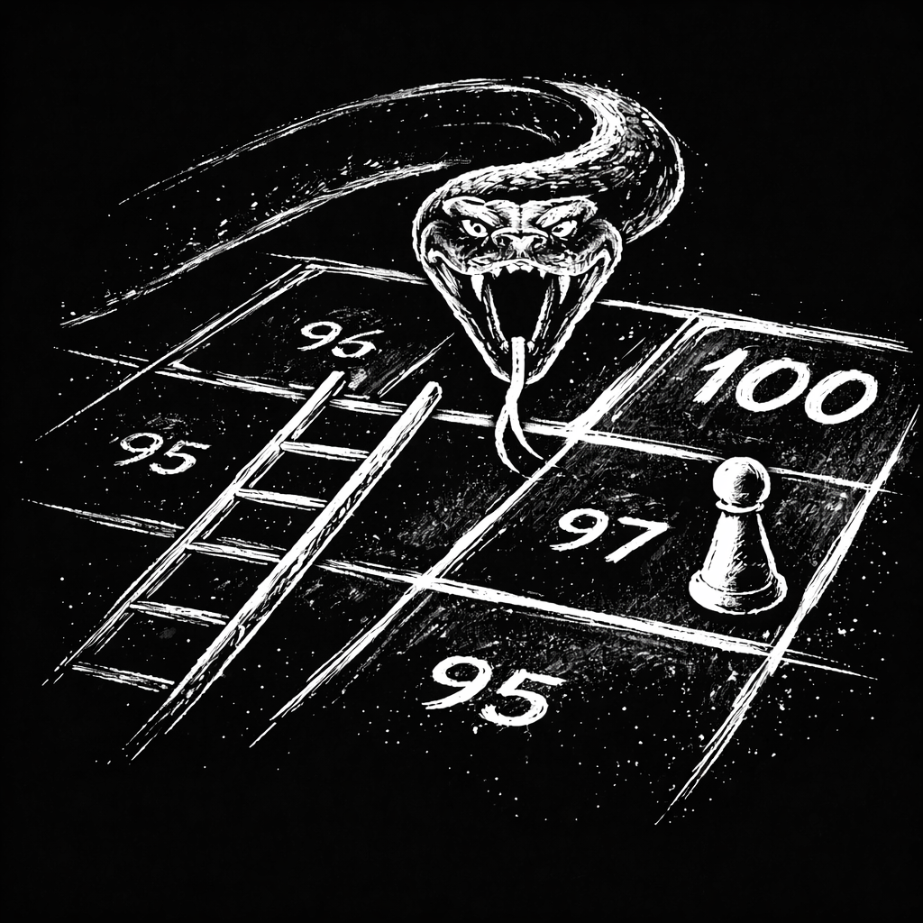 It’s like a game of snakes and ladders. Just when you’re one square from the finish line, impatience sends you sliding back to the middle.
